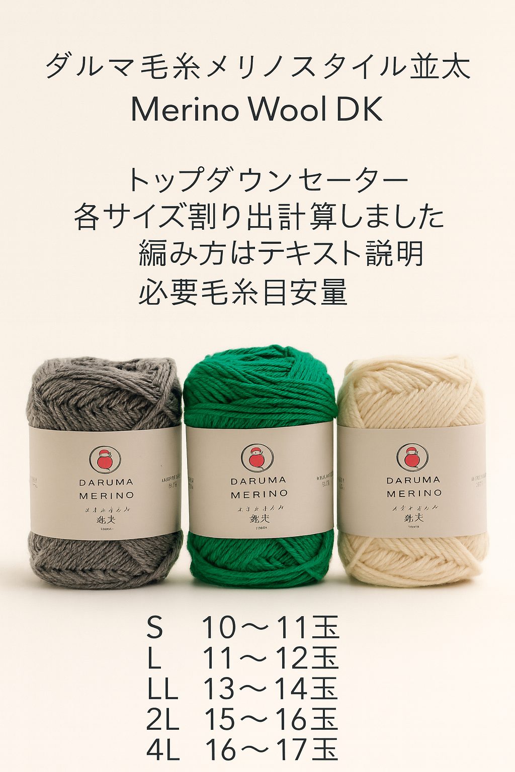 ダルマ・メリノスタイル並太毛糸で編むラグランセーター・セーター